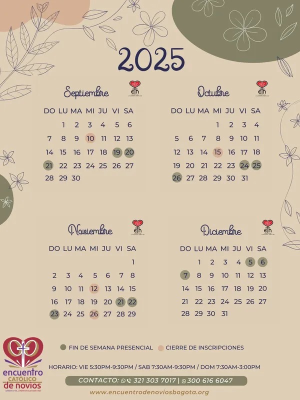 PROGRAMACIÓN DE LOS ENCUENTROS PREMATRIMONIALES
