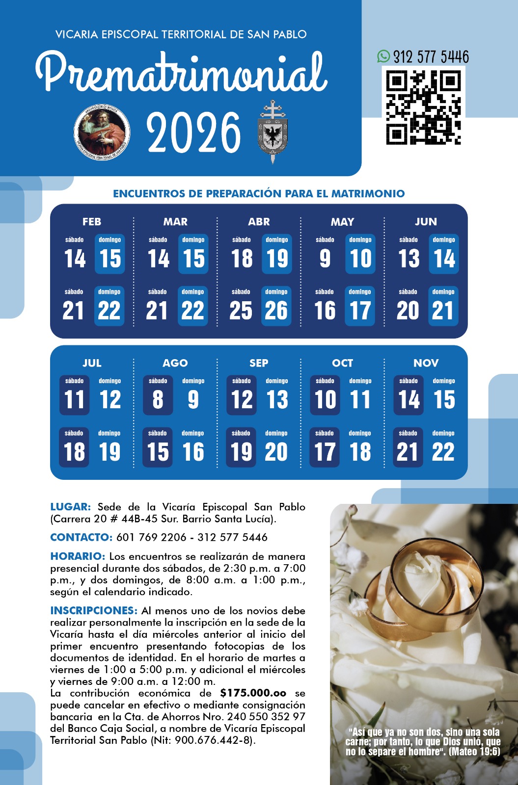 SAN PABLO 29 de Enero de 2025 Like 0 Dislike 0 Otros artículosCurso Específico III "Fundamentos teológicos - pastorales para la preparación inmediata al sacramento del matrimonio"19 de Febrero de 2026#FamiliasCultivandoLaFe Encuentro formación de escucha 18 de Febrero de 2026#FamiliasEscuchandoConElCorazón👂🏻❤️
