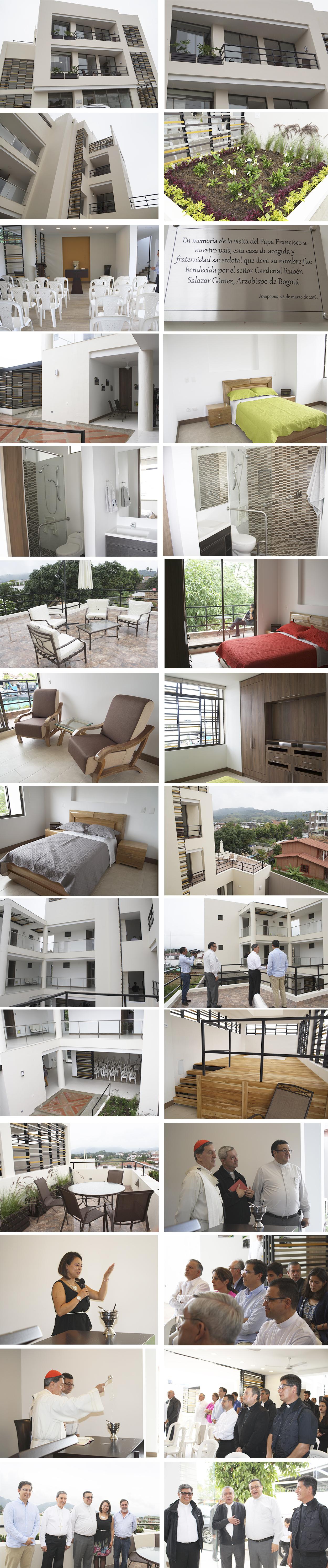 La Casa Papa Francisco, de mil doscientos metros cuadrados, tiene cuatro pisos y 12 habitaciones. En el último piso se encuentra una zona húmeda con jacuzzi y turco, la enfermería y un espacio adecuado para realizar terapias o ejercicios de recuperación de la salud.