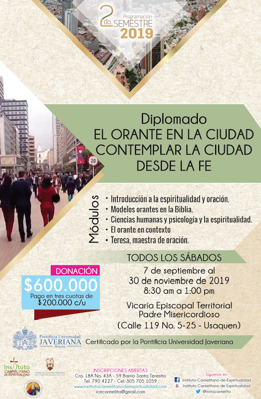 El Instituto Carmelitano de Espiritualidad, de la Orden de los Padres Carmelitas, quiere dar a conocer la propuesta del diplomado El orante en la ciudad, contemplar la…