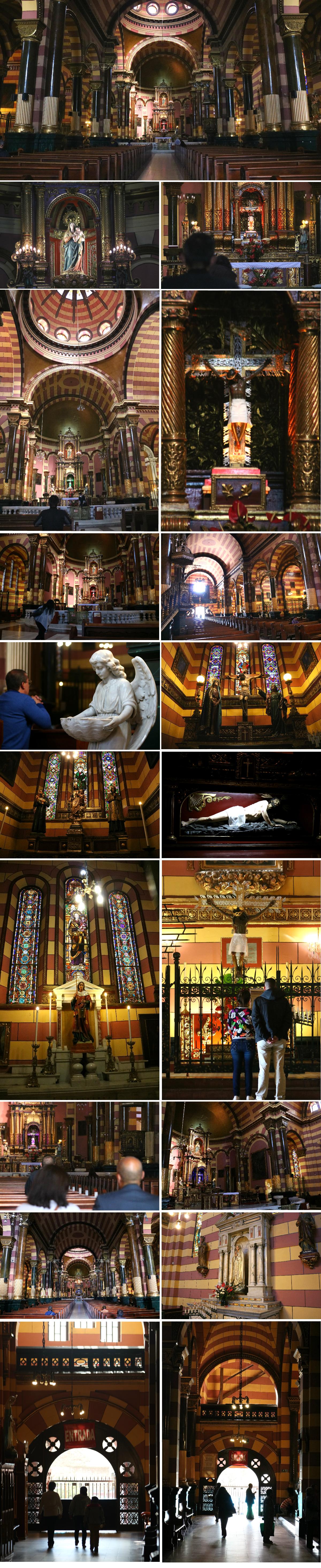La iglesia mide 64 metros de longitud por 27.50 de ancho. El alto de la nave principal es de 15 metros. El altar mayor está adornado con columnas en espiral y el púlpito es de madera hermosamente tallada. Sobresalen sus vitrales en las naves laterales y sus imponentes esculturas.