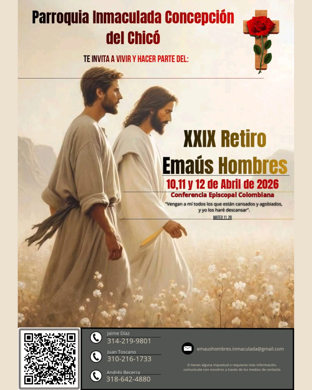 El grupo de Emaús Hombres de la parroquia @inmaculadaconcepcionparroquia te invita a vivir y hacer parte del retiro.